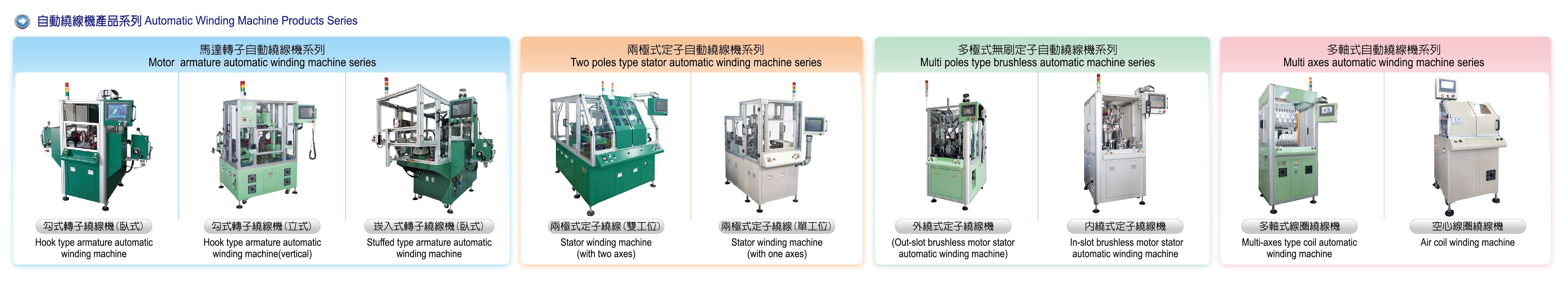 ◾本系列採多工位配置,可設定繞線參數、同時進行相同定子規格之繞線作業,提升生產效率